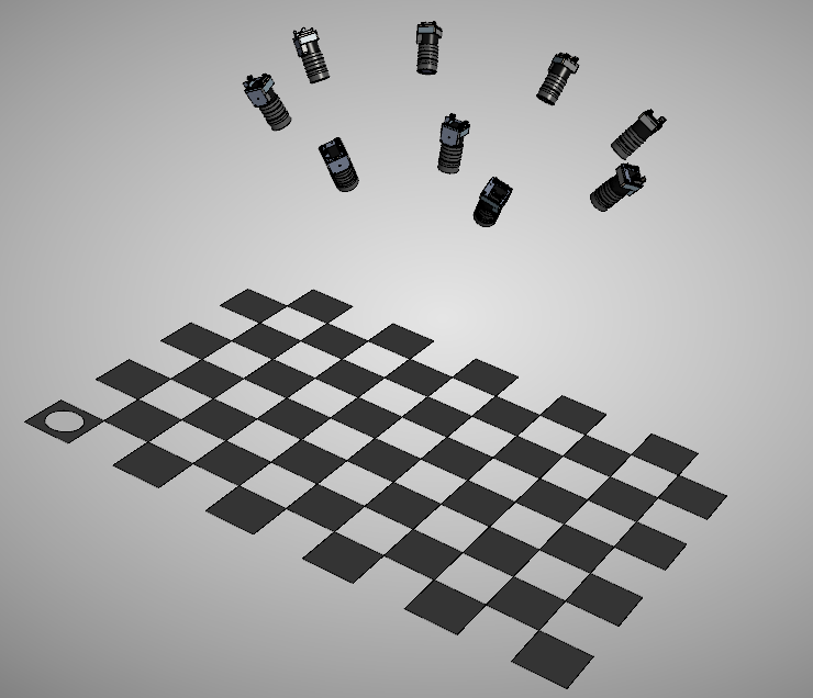 多機能ADAS車載カメラは画像を表示すると同時に、距離、サイズ等の3次元実空間の情報も提供できます。2次元画素座標から3次元実空間座標を推測するため、カメラの内部パラメーターが必要になります。 QCI800は模様、サイズ既知の平面チャートを利用し、測定対象カメラの焦点距離、光学中心位置、ディストーション等の内部パラメーターを同定します。顧客カメラの焦点距離、視角、物体距離等によって、装置を特注になります。