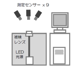 カメラモジュールへのセンサー組付工程において、チャート撮像画像よりデフォーカスMTFを測定し、そのデータからあおり調整値を算出し、表示します。組付後のMTF検査も同時に行えます。カメラモジュールレンズ組付冶具に固定されたカメラモジュールに接続されるI/F BOXとI/F BOXと接続されたPC、モニタからなり、I/F BOXとの信号線の接続後、PCよりカメラモジュールレンズモータを駆動して、デフォーカスMTFデータを演算算出します。計測したデフォーカスMTFデータより、レンズ取付あおり調整値を算出してモニタに表示します。